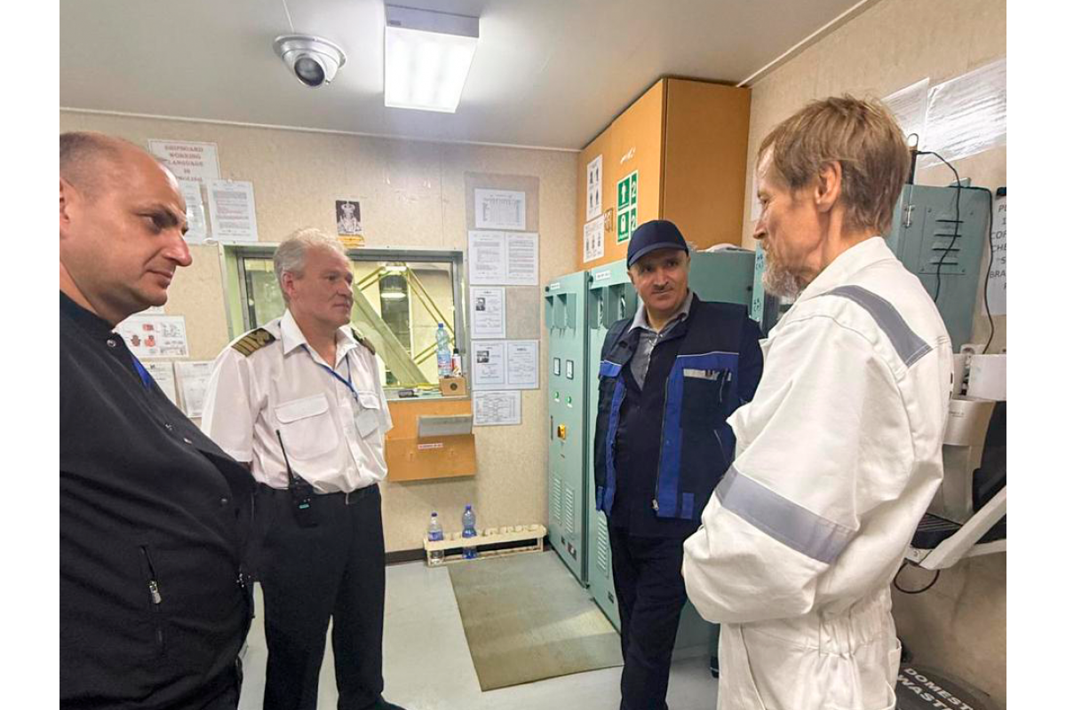 Rauf Vəliyev “Qafur Məmmədov” gəmisinin heyət üzvləri ilə görüşüb, gəminin təmirdən sonra təhvil prosesinin təşkilinə dair tapşırıqlarını verib.